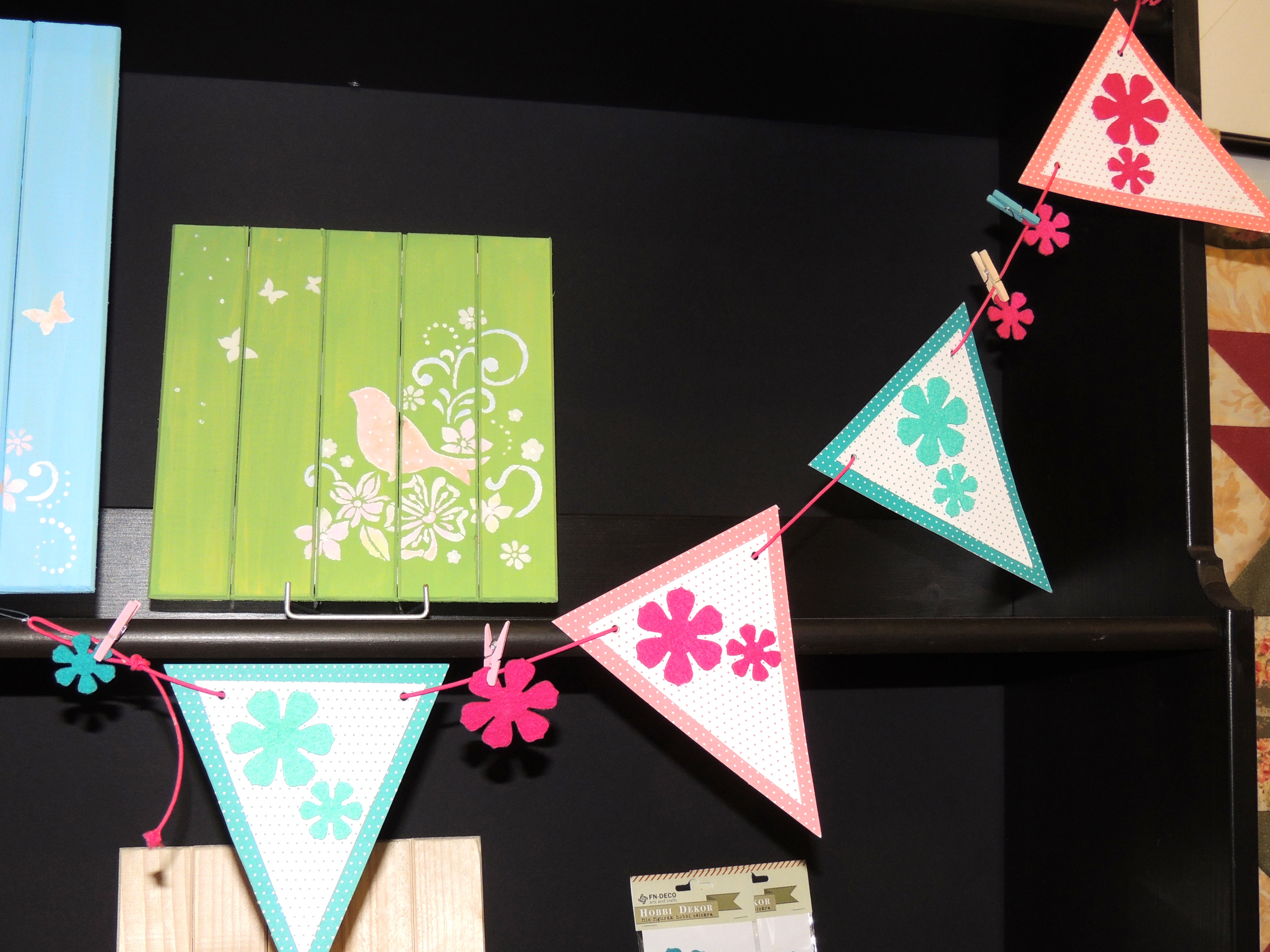 Festés mellett vagy helyett gyönyörű, mintás (csíkos, pöttyös, kockás) kartonokkal és színes filcdíszekkel, ragasztással is szépséges parti dekorációkat, ajándékokat készíthetünk.