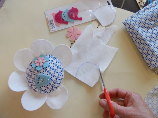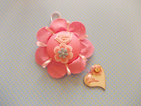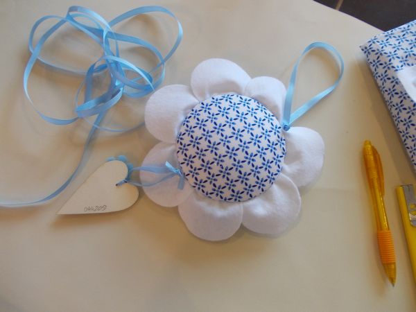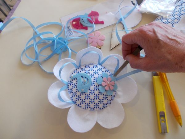 Készen is vannak a csodálatos babaváró díszeink! A kislány virágon a szalagokat máshogy helyeztük el, ez is egy lehetőség. Most már hajrá, beindulhat a fantáziátok, és ki-ki alkalomhoz illően elkészítheti ezzel a módszerrel az egyedi ajándékát!