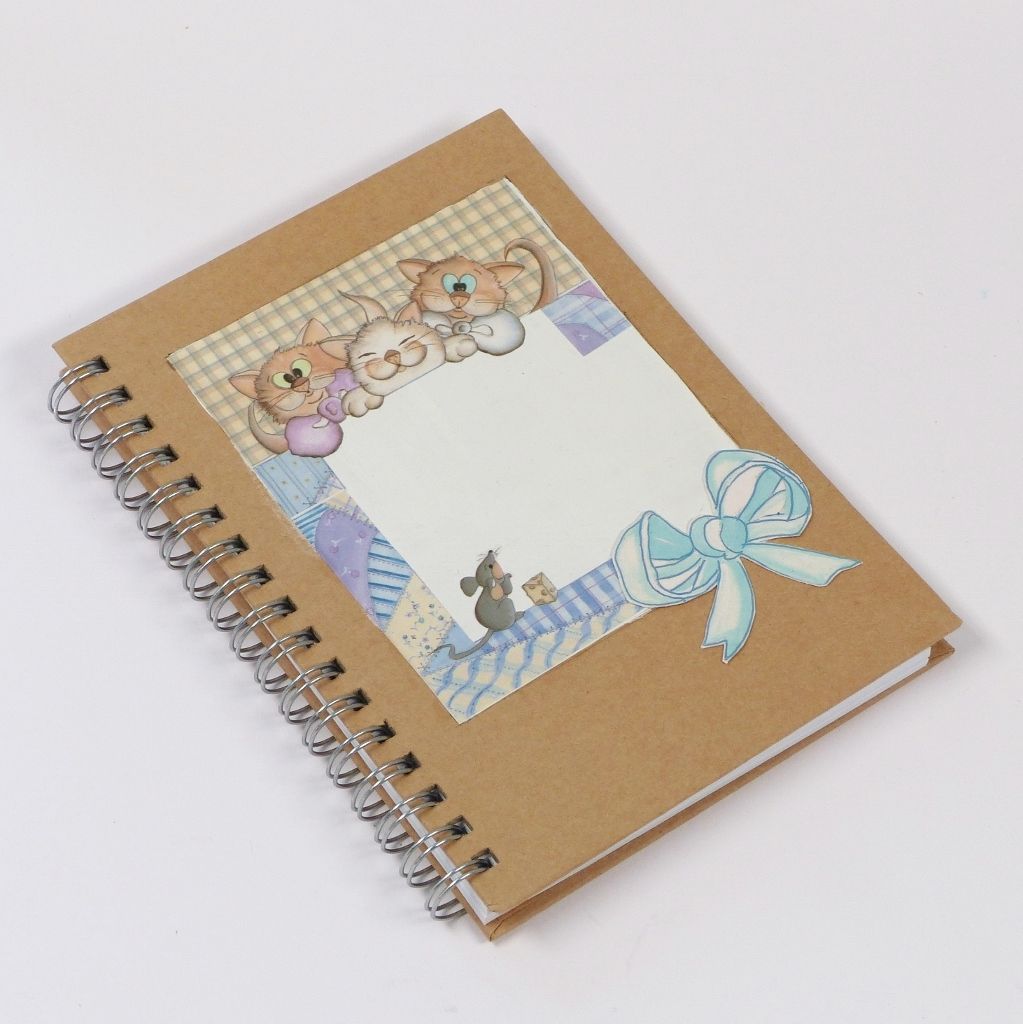 Az első minta egy egyszerű, natúrborítású füzet, amire simán felragasztottuk a papírból kivágott mintát és kész is a műalkotásokat rejtő rajzfüzet!