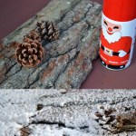A fehér festék elengedhetetlen 🙂 Tobozok festése fehérre: a kis mértékben higított festékbe mártogatva, vagy ecsettel. Forrás a képen.