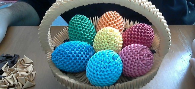 Az igazi türelemjáték, a 3D origami, vagy 1000 papír origami technika. Próbáljuk ki, legalább egy húsvéti színes tojás erejéig, érdemes!